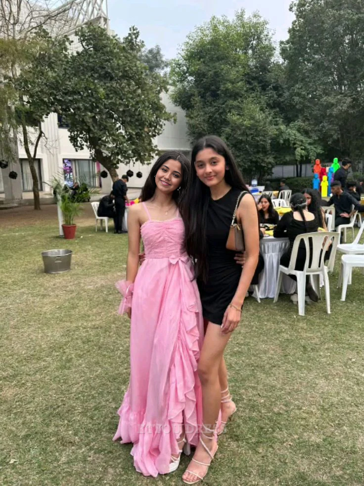 A Line Spaghetti Straps Ruffles Pink formal dresses Bridesmaid Dresses evening gown Prom Dress