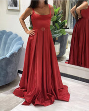 A-line Spaghetti Straps Satin Long Bridesmaid Dresses Prom Dresses