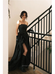 A Line Strapless Black Long formal dresses Bridesmaid Dresses evening gown Prom Dress