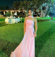 A Line Strapless Pink Chiffon formal dresses Bridesmaid Dresses evening gown Prom Dress