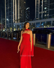 A Line Strapless Red formal dresses Bridesmaid Dresses evening gown Prom Dress
