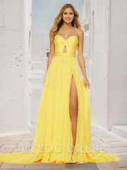 A-Line Sweetheart Neck Court Train Sleeveless Zipper Pleated formal dresses Bridesmaid Dresses evening gown Prom Dress