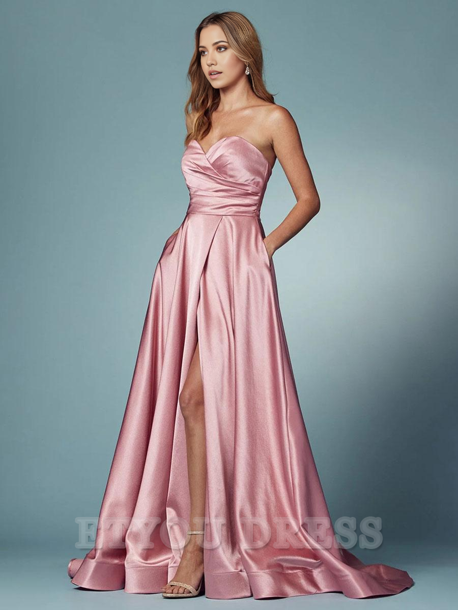 A-Line Sweetheart Neck Satin Sleeveless Pockets formal dresses Bridesmaid Dresses evening gown Prom Dress