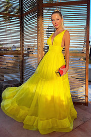 A Line V Neck Chiffon Evening Dresses Prom Dresses
