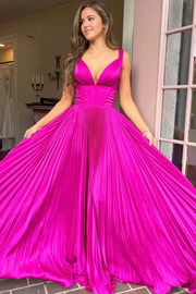 A-Line V-Neck Straps Pleated Empire-Waist Sleeveless Long formal dresses evening gown Prom Dress