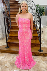 Mermaid Charming One Shoulder Pink Sequins formal dresses evening gown Long Prom Dresses