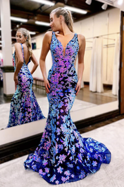 Mermaid Gorgeous V Neck Sequins Lace Long Prom Dress