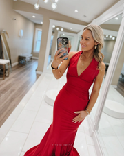 Mermaid Halter Satin Red formal dresses Bridesmaid Dresses evening gown Prom Dress