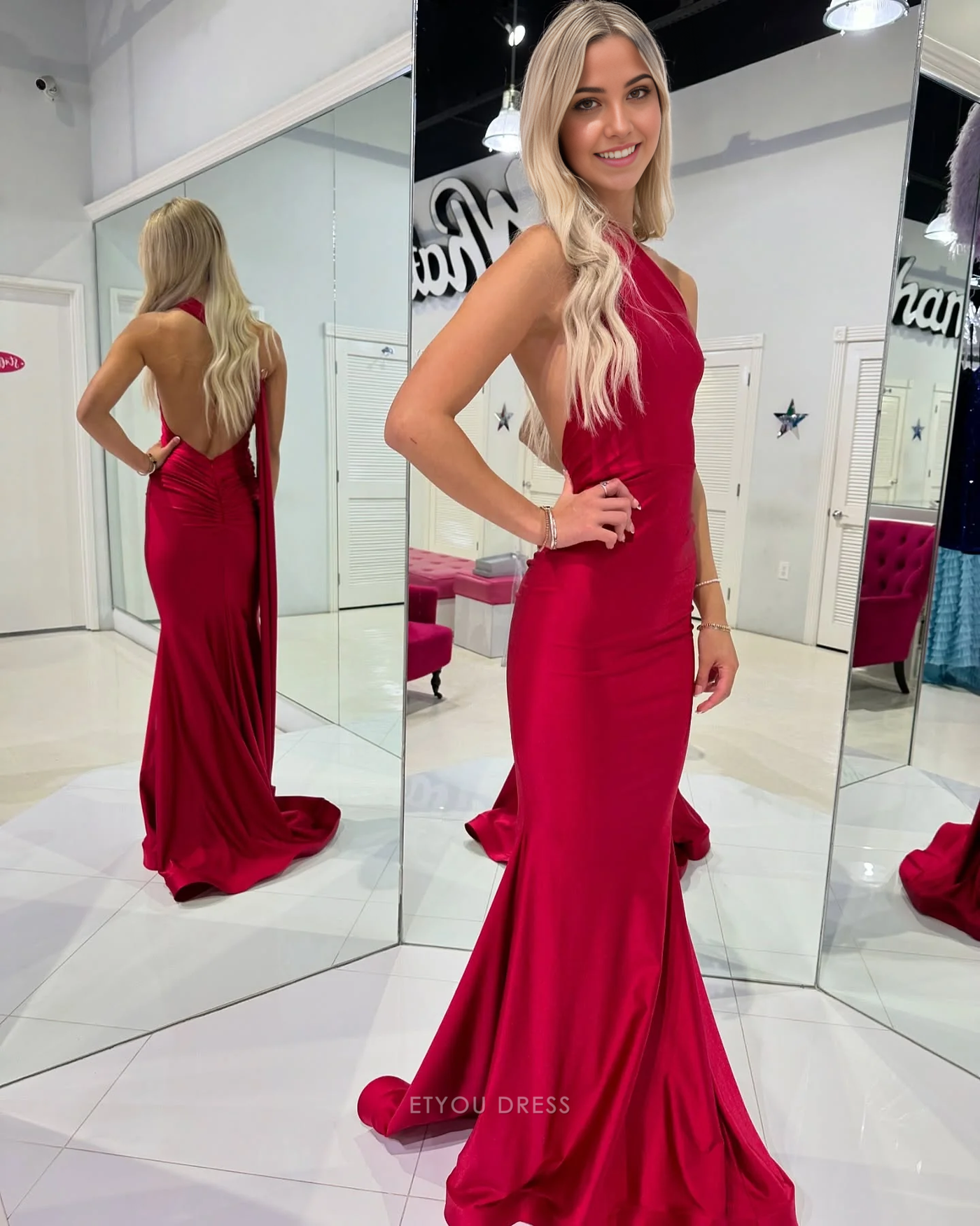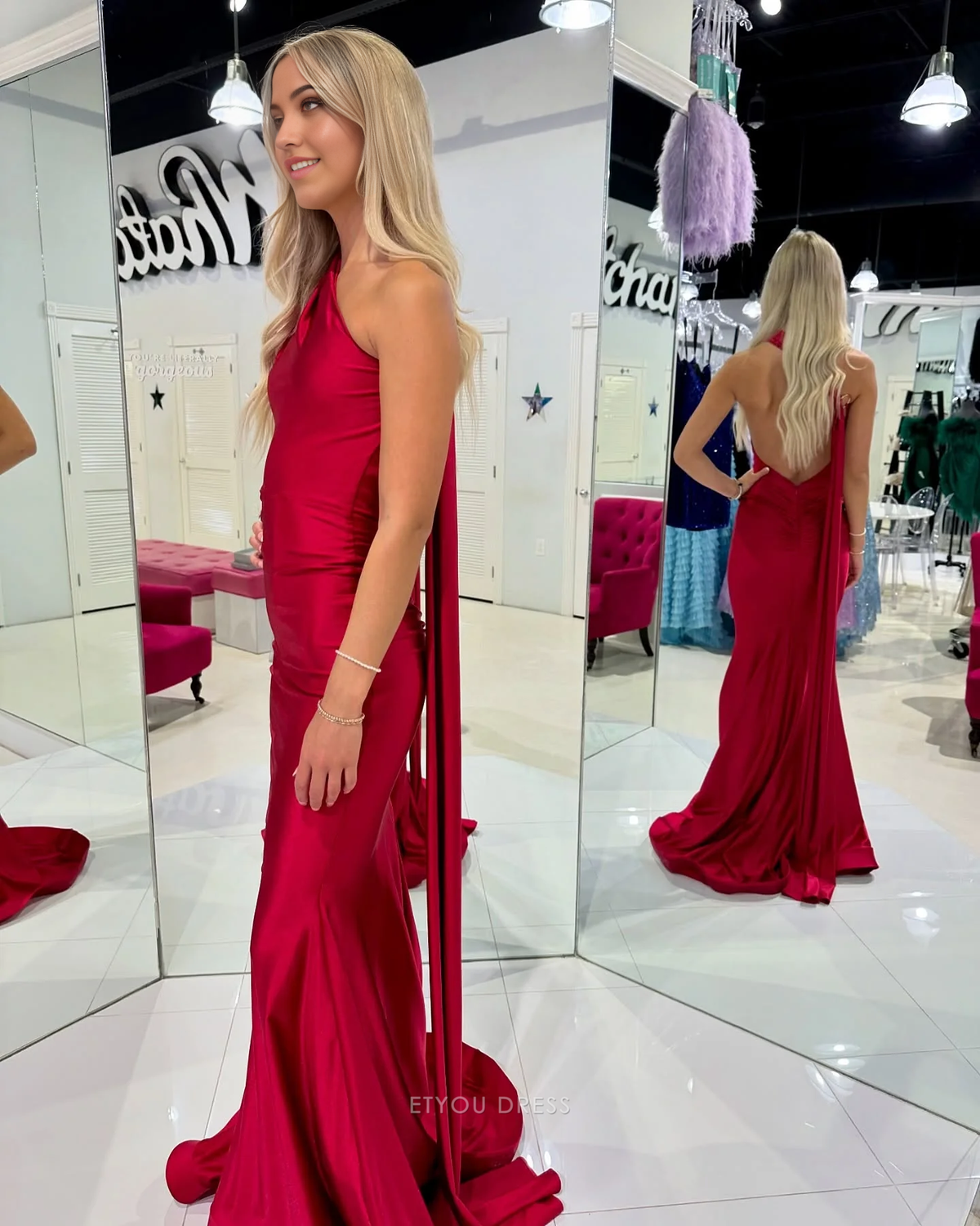 Mermaid One Shoulder Backless Sexy Red formal dresses Bridesmaid Dresses evening gown Prom Dress