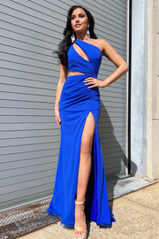 Mermaid One-Shoulder Keyhole Royal Blue Long formal dresses Bridesmaid Dresses evening gown Prom Dress with Slit