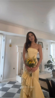 Mermaid Strapless Yellow Ruffle Long formal dresses Bridesmaid Dresses evening gown Prom Dress