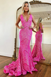 Mermaid V-Neck Sparkly Sequin Open Back Long evening gown formal dresses Prom Dress