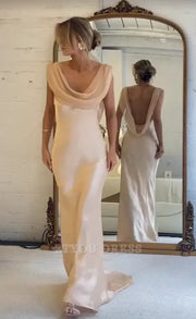 Sheath Backless Satin Long formal dresses Bridesmaid Dresses evening gown Prom Dress