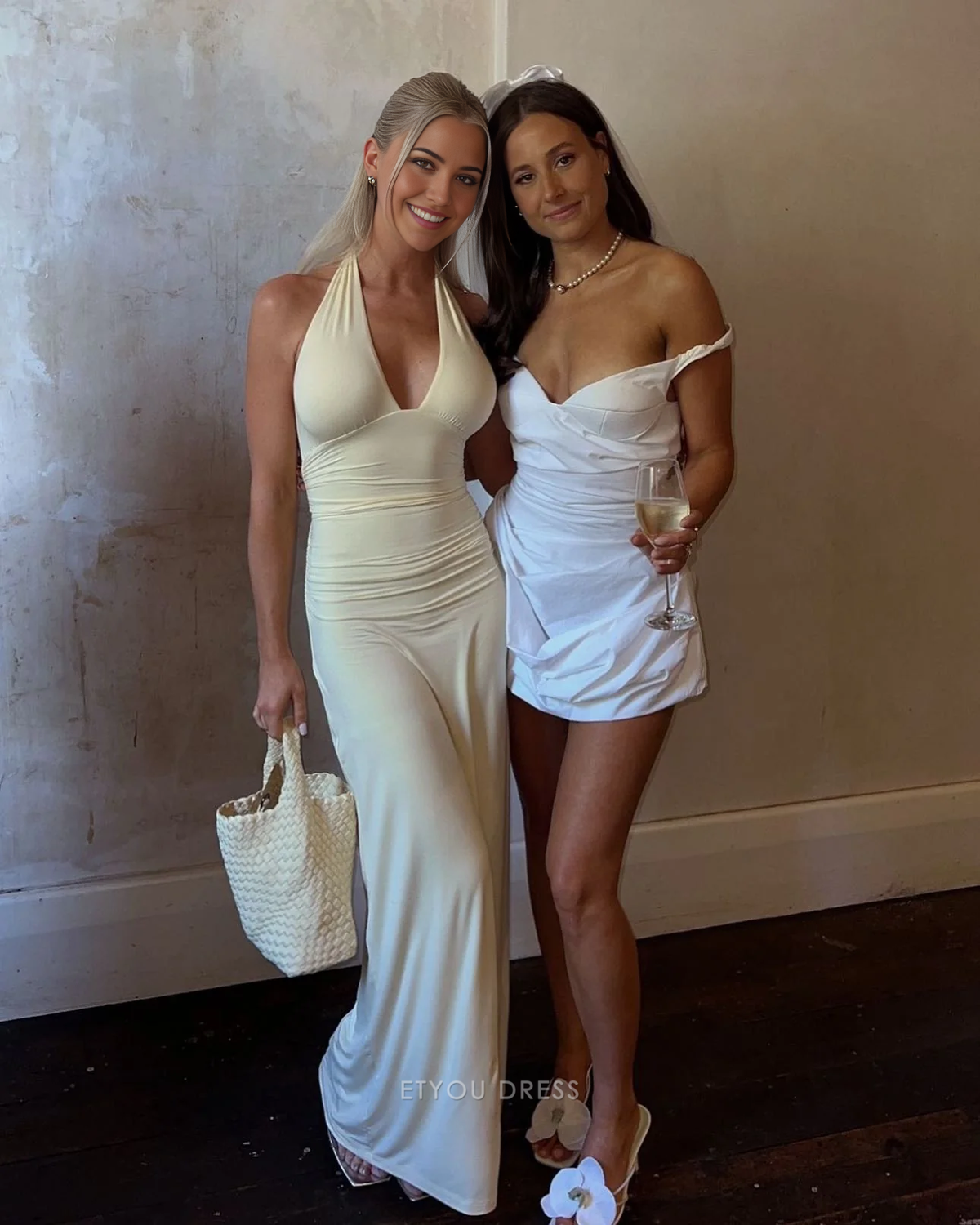 Sheath Halter V Neck Yellow formal dresses Bridesmaid Dresses evening gown Prom Dress