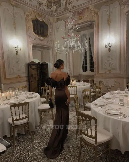 Sheath Off The Shoulder Satin Long formal dresses Bridesmaid Dresses evening gown Prom Dress