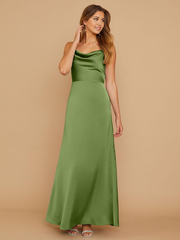 Sheath Spaghetti Straps Floor-Length Zipper Satin formal dresses Bridesmaid Dresses evening gown Prom Dress