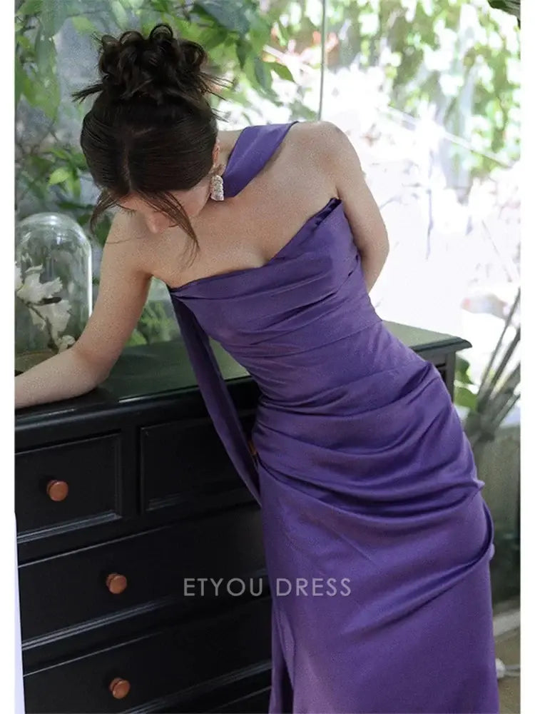 Sheath Strapless Purple Long formal dresses Bridesmaid Dresses evening gown Prom Dress - US 2 / UK 6 / EU 32