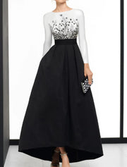 A-Line Cocktail Dresses Elegant Dress Wedding Guest Semi Formal Asymmetrical Long Sleeve Jewel Neck Satin with Pattern / Print Splicing - US 2 / UK 6 / EU 32