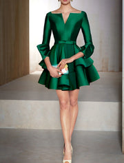 A-Line Cocktail Dresses Party Dress Formal Fall Short / Mini Long Sleeve V Neck Satin with Ruffles