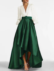 A-Line Cocktail Wedding Guest Dress Elegant Dress Formal Prom Asymmetrical 3/4 Length Sleeve V Neck Satin with Ruched - Dark Green / US 2 / UK 6 / EU 32
