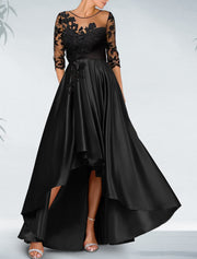 Sheath / Column Cocktail Black Dress Plus Size Luxurious Dress Formal Wedding Guest Asymmetrical 3/4 Length Sleeve Off Shoulder Pocket Satin with Beading Appliques