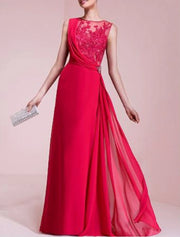 A-Line Evening Gown Beautiful Back Dress Wedding Guest Formal Evening Floor Length Sleeveless Jewel Neck Chiffon with Lace Insert Crystal Brooch