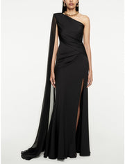 A-Line Evening Gown Elegant Dress Formal Sweep / Brush Train Sleeveless One Shoulder Imitation Silk with Pleats Ruched Slit - US 2 / UK 6 / EU 32