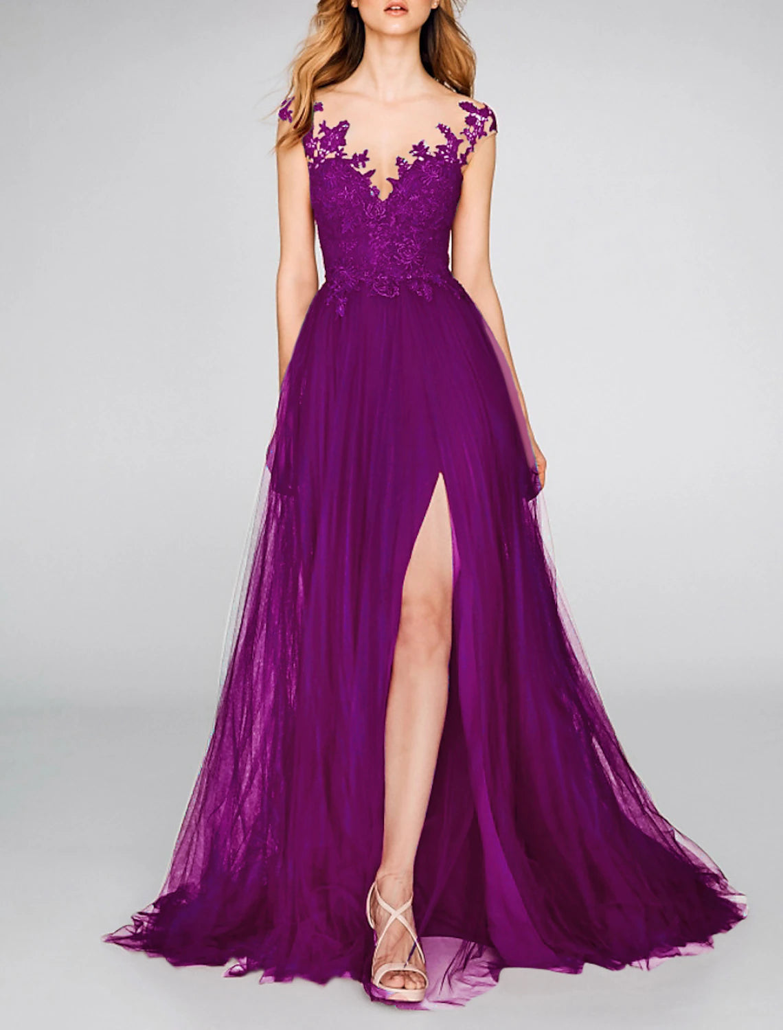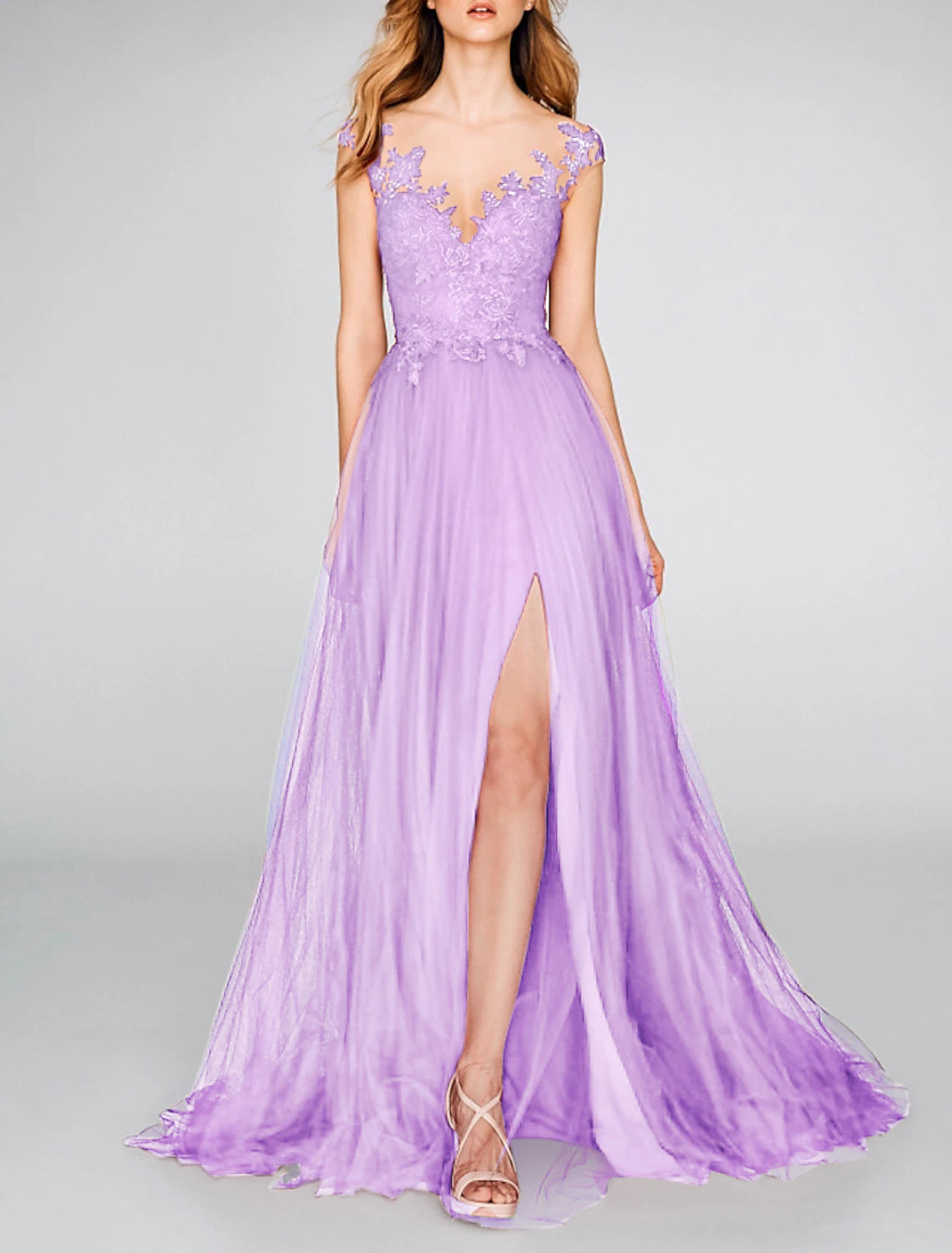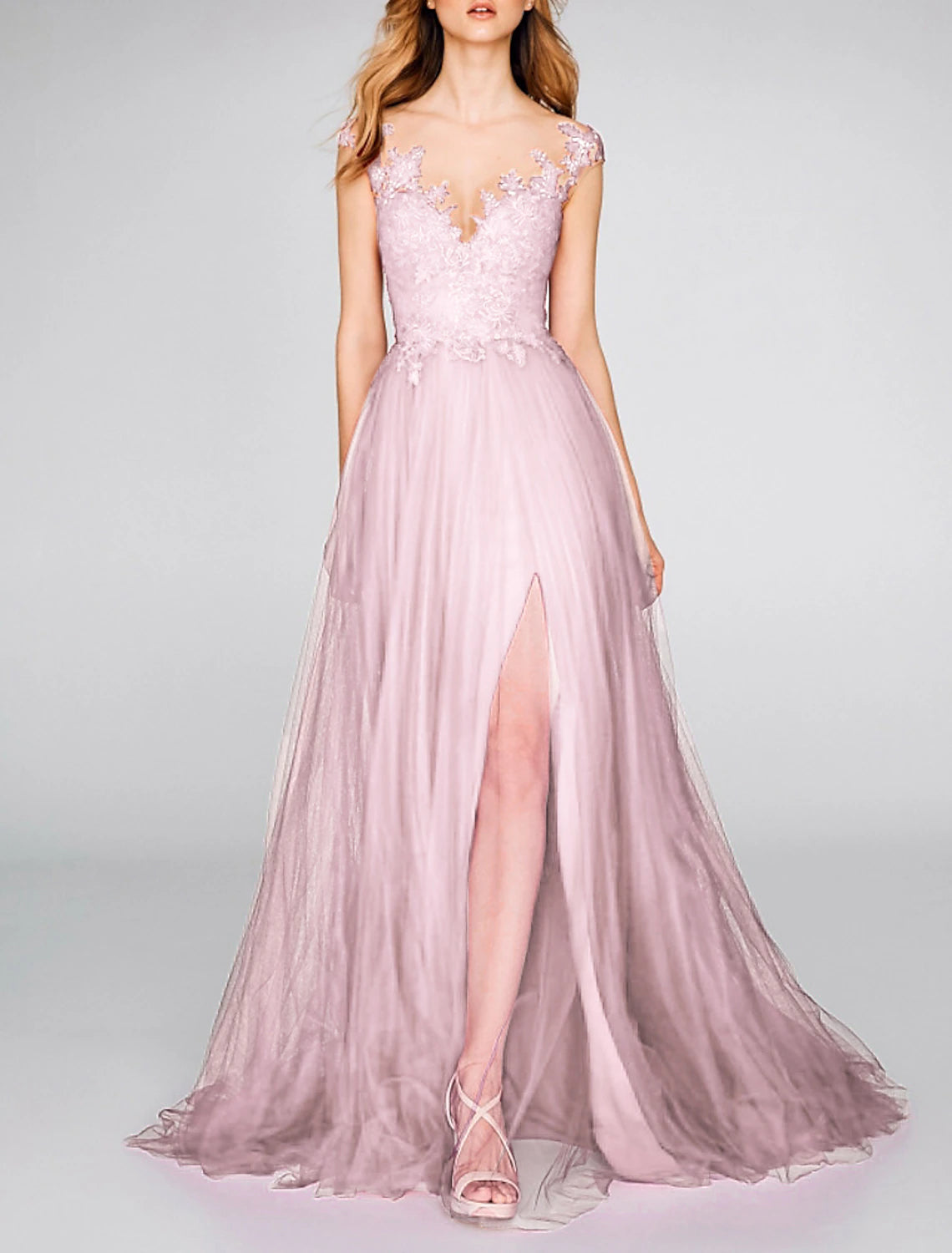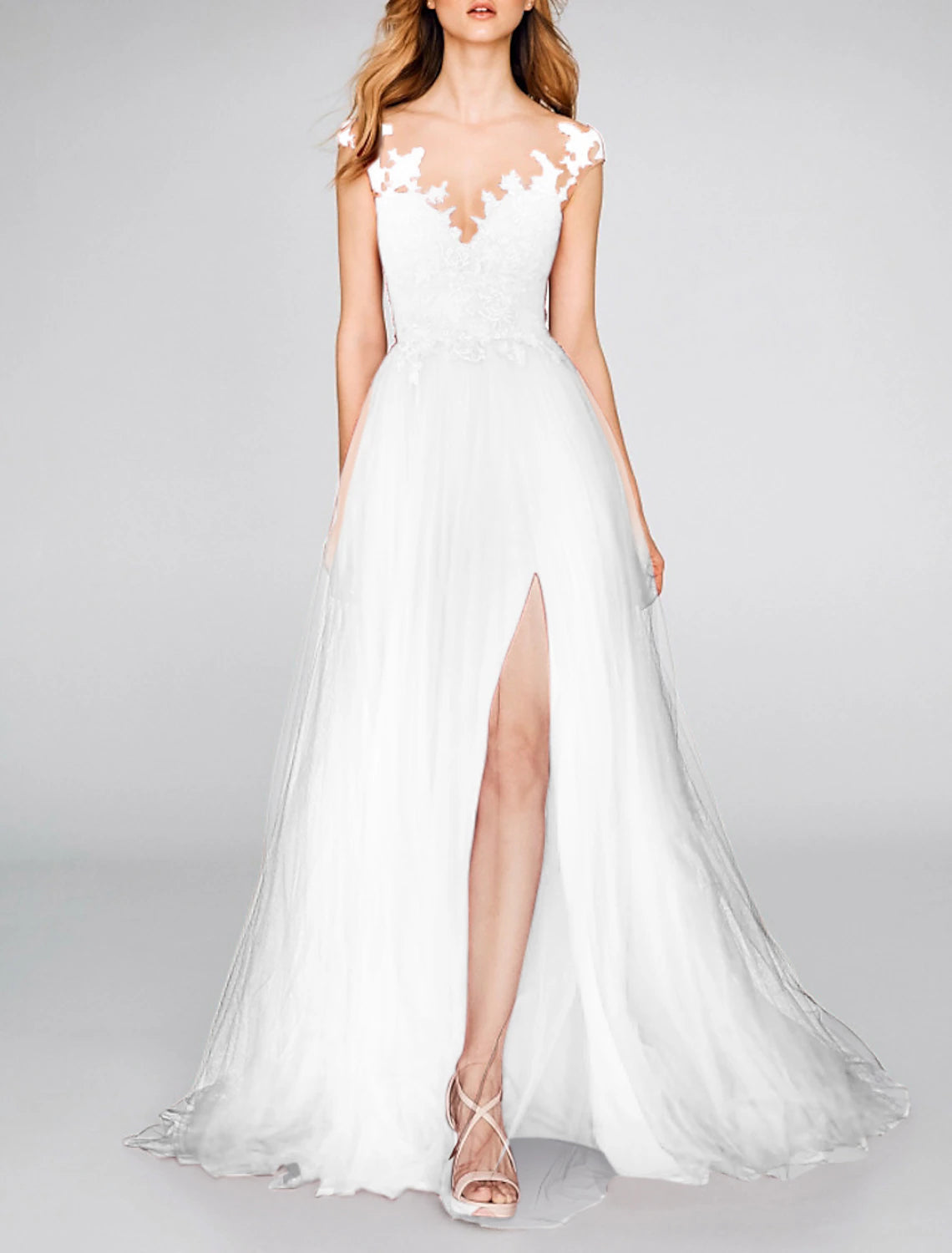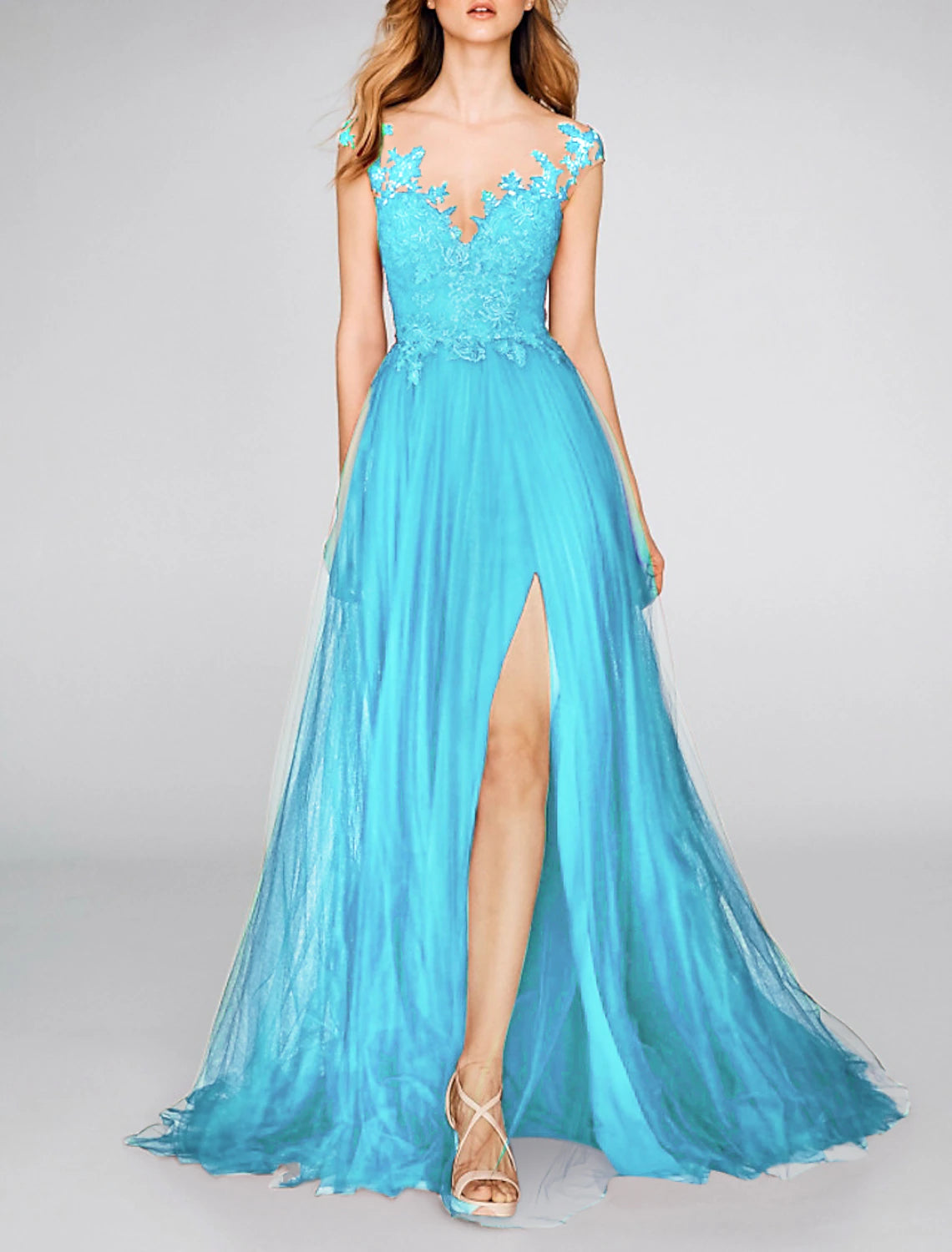 A-Line Evening Gown Party Dress Sexy Dress Engagement Prom Court Train Sleeveless V Neck Chiffon with Slit Appliques