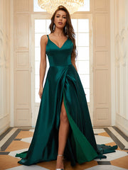 A-Line/Princess Woven Satin Ruffles V-neck Sleeveless Court Train Dresses - US 2 / UK 6 / EU 32