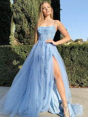 A-Line/Princess Tulle Applique Halter Sleeveless Sweep/Brush Train Dresses