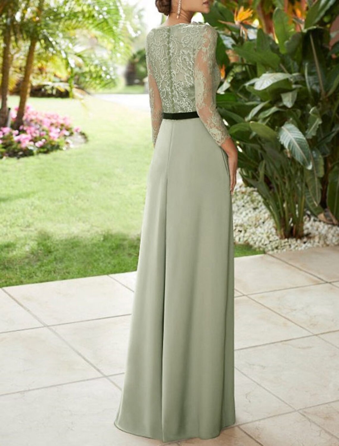 Jumpsuits Evening Gown Elegant Dress Prom Birthday Floor Length 3/4 Length Sleeve V Neck Pocket Stretch Chiffon with Sash / Ribbon Appliques - US 2 / UK 6 / EU 32