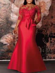 Mermaid Red Green Dress Plus Size Curve Formal Dresses Plus Size Dress Formal Wedding Guest Floor Length Half Sleeve Jewel Neck Satin with Appliques Strappy - US 2 / UK 6 / EU 32