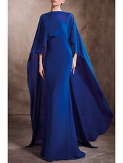 Mermaid / Trumpet Evening Gown Elegant Dress Wedding Guest Cocktail Party Floor Length Sleeveless Jewel Neck Capes Chiffon with Shawl