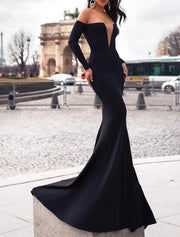 Mermaid / Trumpet Evening Gown Sexy Dress Engagement Formal Evening Chapel Train Long Sleeve Off Shoulder Stretch Fabric with Sleek Pure Color - US 2 / UK 6 / EU 32