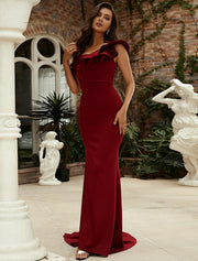 Mermaid / Trumpet Evening Gown Sexy Dress Formal Wedding Guest Sweep / Brush Train Sleeveless One Shoulder Polyester with Ruffles - US 2 / UK 6 / EU 32