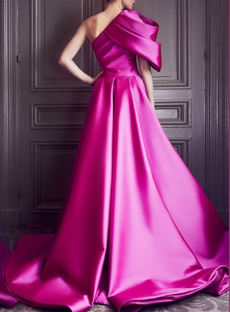 Mermaid / Trumpet Evening Gown Sexy Dress Summer Court Train Sleeveless One Shoulder Fall Wedding Reception Satin with Ruched Slit