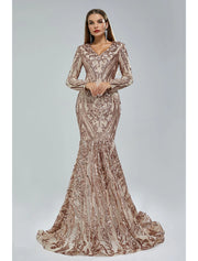 Mermaid / Trumpet Evening Gown Sparkle & Shine Dress Formal Court Train Long Sleeve V Neck African American Lace with Sequin - Peach / US 2 / UK 6 / EU 32