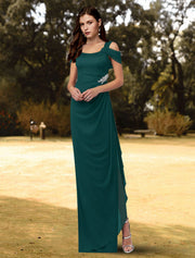 Sheath / Column Evening Gown Empire Dress Formal Evening Floor Length Short Sleeve Square Neck Chiffon with Crystals Slit
