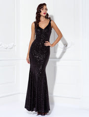 Sheath / Column Sparkle & Shine Dress Wedding Guest Prom Floor Length Sleeveless V Neck Sequined V Back with Sequin