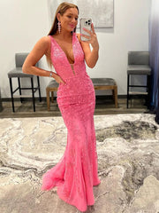 Sheath/Column Tulle Applique V-neck Sleeveless Sweep/Brush Train Dresses