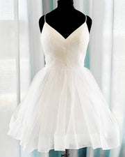 A-line Pleated Tulle V Neck Ruffles Prom Dresses