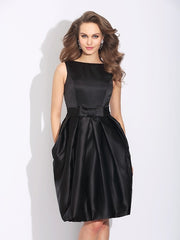 A-Line/Princess Bateau Bowknot Sleeveless Short Satin Dresses