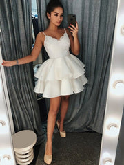 A-Line/Princess Satin Ruffles Spaghetti Straps Sleeveless Short/Mini Dresses