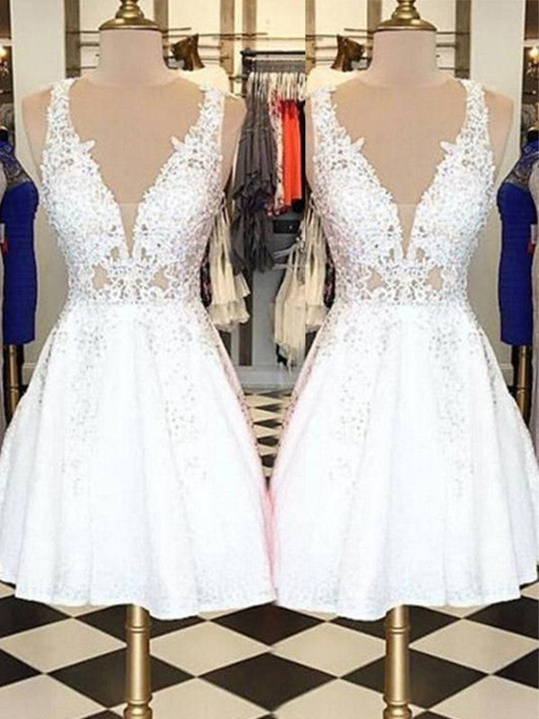 A-Line/Princess Sleeveless Bateau Lace Applique Short/Mini Dresses