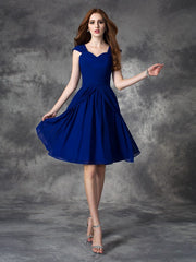 A-line/Princess Straps Ruffles Sleeveless Short Chiffon Dresses