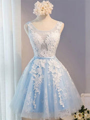 A-Line/Princess Tulle Applique Scoop Sleeveless Short/Mini Homecoming Dresses
