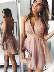 A-Line/Princess Tulle Ruched Halter Sleeveless Short/Mini Homecoming Dresses
