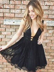 A-Line/Princess V-Neck Lace Sleeveless Short/Mini Dresses