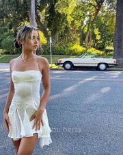 A-line Ruffle Short Beige Homecoming Dress formal dresses Bridesmaid Dresses evening gown Prom Dress