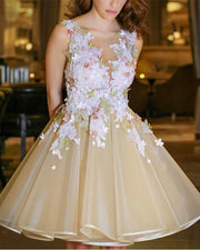 A-line Short Floral Lace Embroidery Open Back Homecoming Dress
